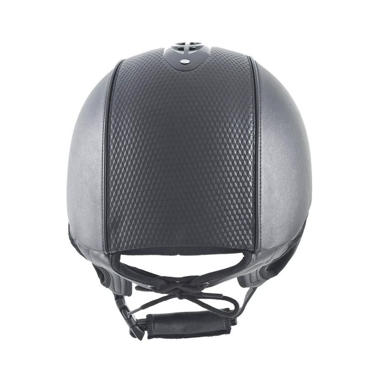 Low profile lightweight fibre glass shell. Highly ventilated airflow system. Synthetic leather finish with black gloss vent & black patent piping detail. Crown comfort padding in breathable hi-tech microfibre with four point padded synthetic leather harness with rear lacing adjustment, lined with brush nylon for ear comfort pad compatibility.