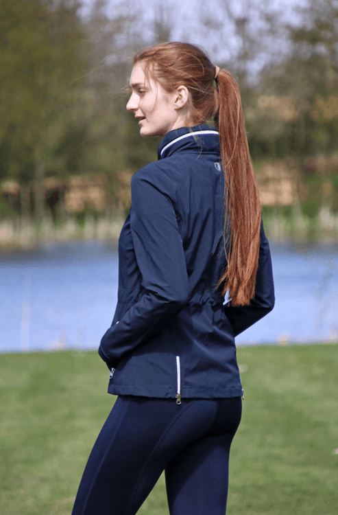 A stylish and well-fitted navy waterproof jacket by Hy Equestrian designed to keep you dry and protected from the elements. A hood provides extra protection from the rain. Silver zips throughout to give a beautiful finish to the look.