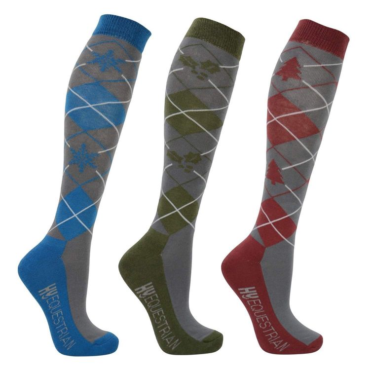 Hy Equestrian - Christmas Argyle Socks (Pack of 3) - Adult 4-8