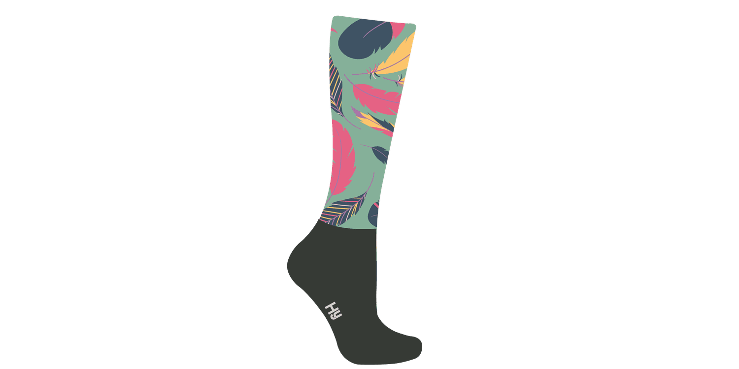 HyFASHION Enchanted Feather Pattern Riding Socks - Green/Gold/Pink/Black - Adult 4-8