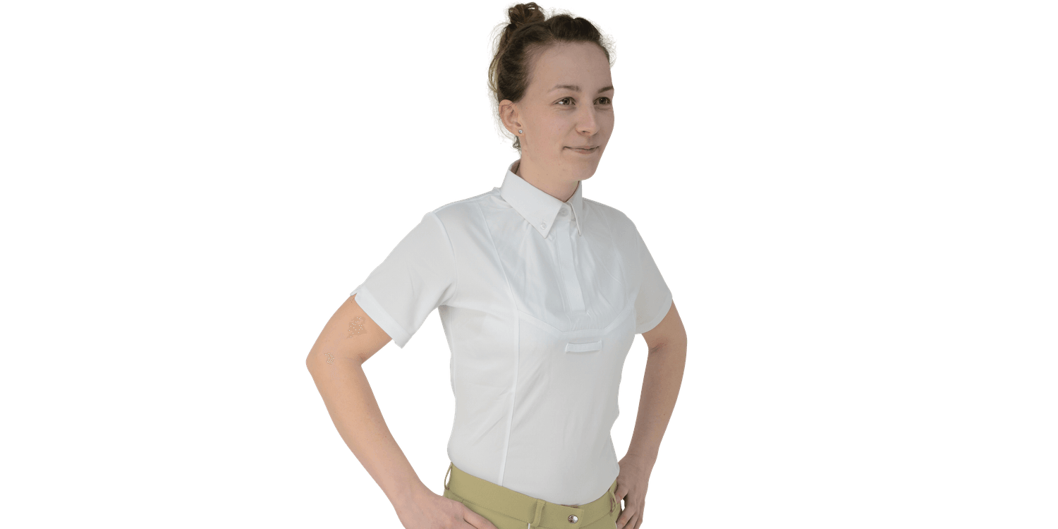 This short sleeved tie shirt is designed with CoolDry fabric to wick away moisture, ensuring you remain comfortable, confident and dry in the show ring. The bi-stretch material provides freedom of movement whilst riding. A traditional cotton front panel creates a smart appearance at all times, enhanced by the addition of the button collar and tie keeper.