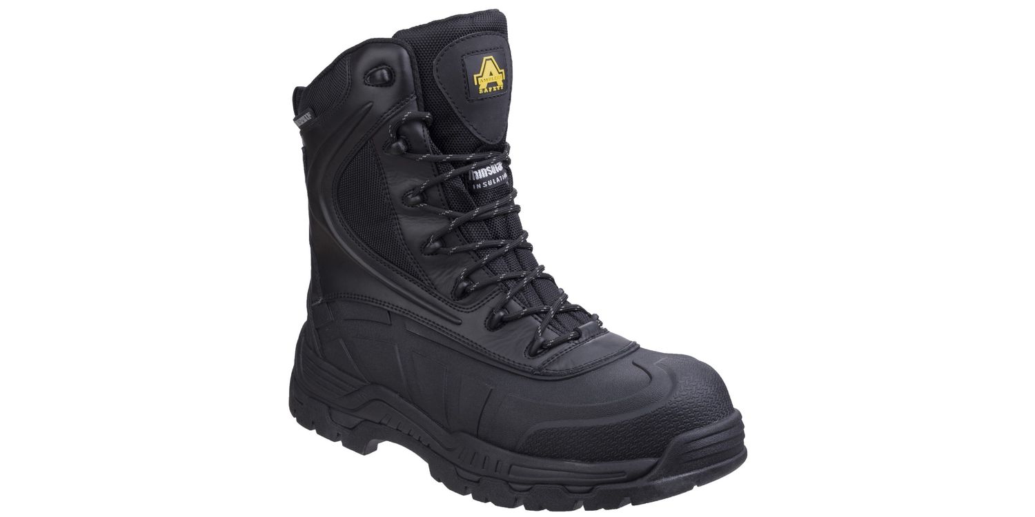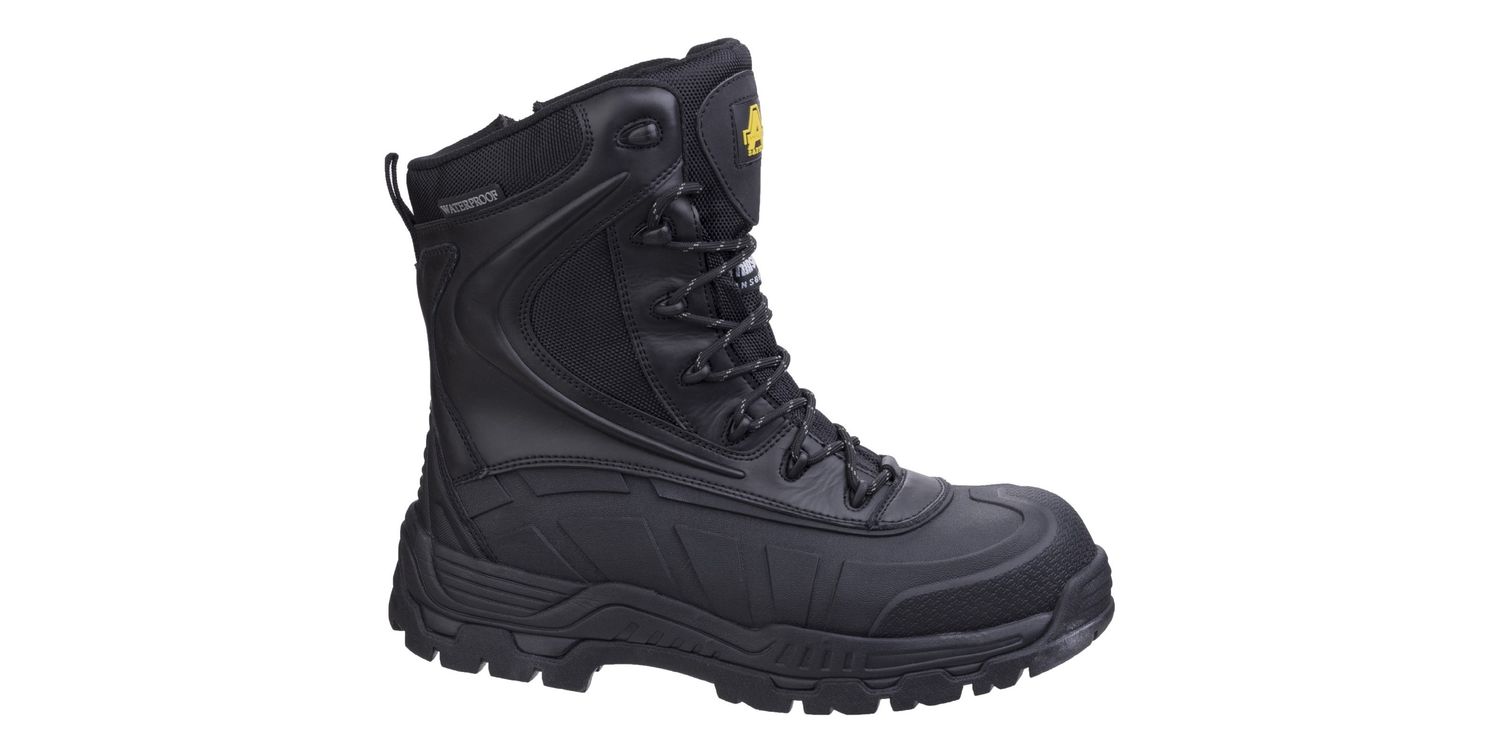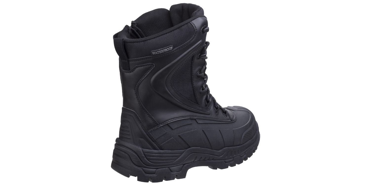 Robust metal-free waterproof hi-leg hybrid safety boot with quick access YKK side zip, 200g Thinsulate lining and cemented EVA/rubber outsoleHalf Rubber and Half Water Resistant Leather and Mesh UpperBreathable Waterproof Membrane & Mesh Lining200 Joules Fibre Glass Composite ToecapAnti-penetration Non-Metal Midsole