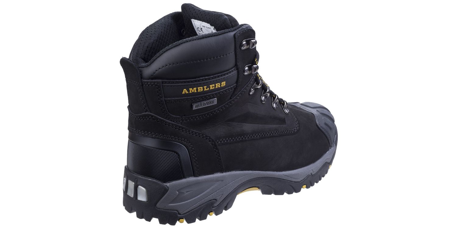 Safety boot with steel toe and midsole as well as Poron XRD internal metatarsal extreme impact protection. Waterproof lining and water resistant leather. Rubber bump toe and heel guard for added protection.Amblers Safety FS987 Safety BootWaterproofHeat Resistant OutsolePadded Collar