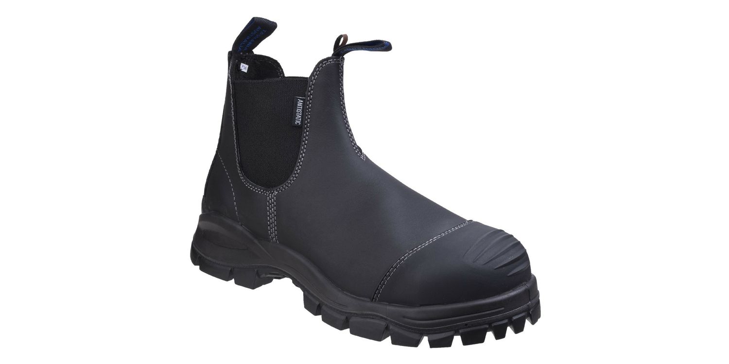 Its dealer boot design includes elastic side panels for easy slip - on access and a secure, comfortable fit. Suitable for a range of industrial and commercial applications, the Blundstone Black 910 Dealer Safety Boot balances safety with a contemporary look.
