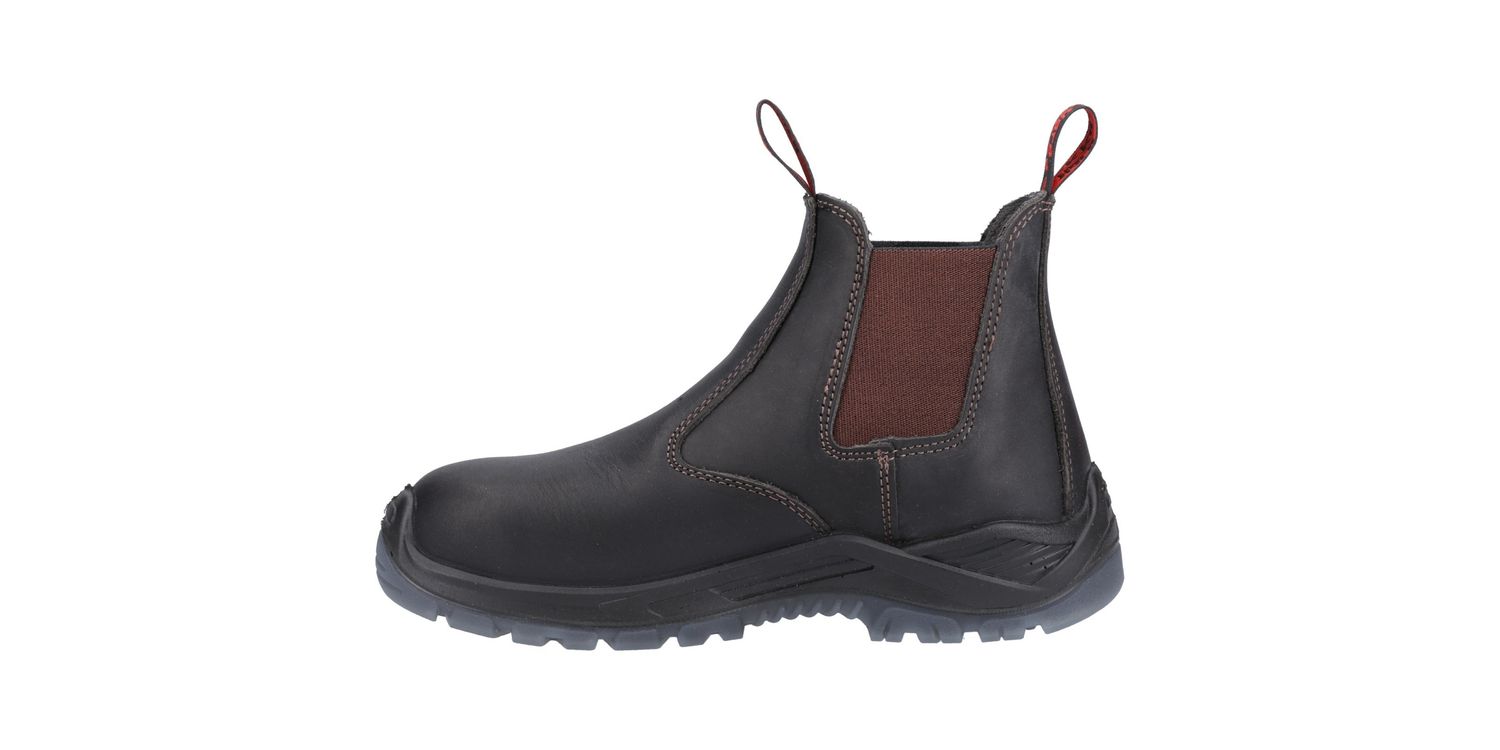 Banjo pull on gusset boot provides safety and comfort, engineered with a water resistant full grain leather upper, PU midsole and recycled pre-consumer TPU outsole endorsed by the Global Recycle Standard (GRS).Water resistant full grain leather upperWide profile steel toe capRecycled pre-consumer TPU outsole plateARZ+ heel cushioning