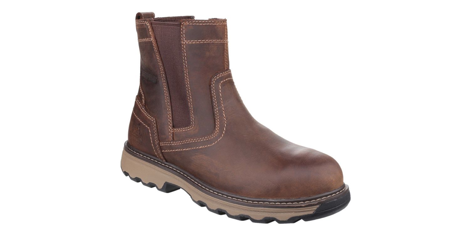 Caterpillar Pelton Safety Boot are a comfortable and versatile slip-on workboot for the modern workplace. Featuring a super easy design for putting on and taking off, this comfortable leather footwear also comes with a steel toe cap, penetration protection and a heat resistant design. Great for stockroom, distribution, site manager & light industrial work.