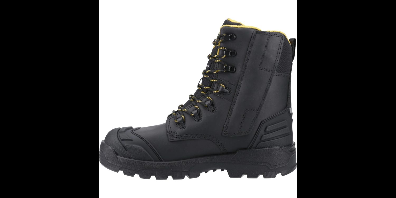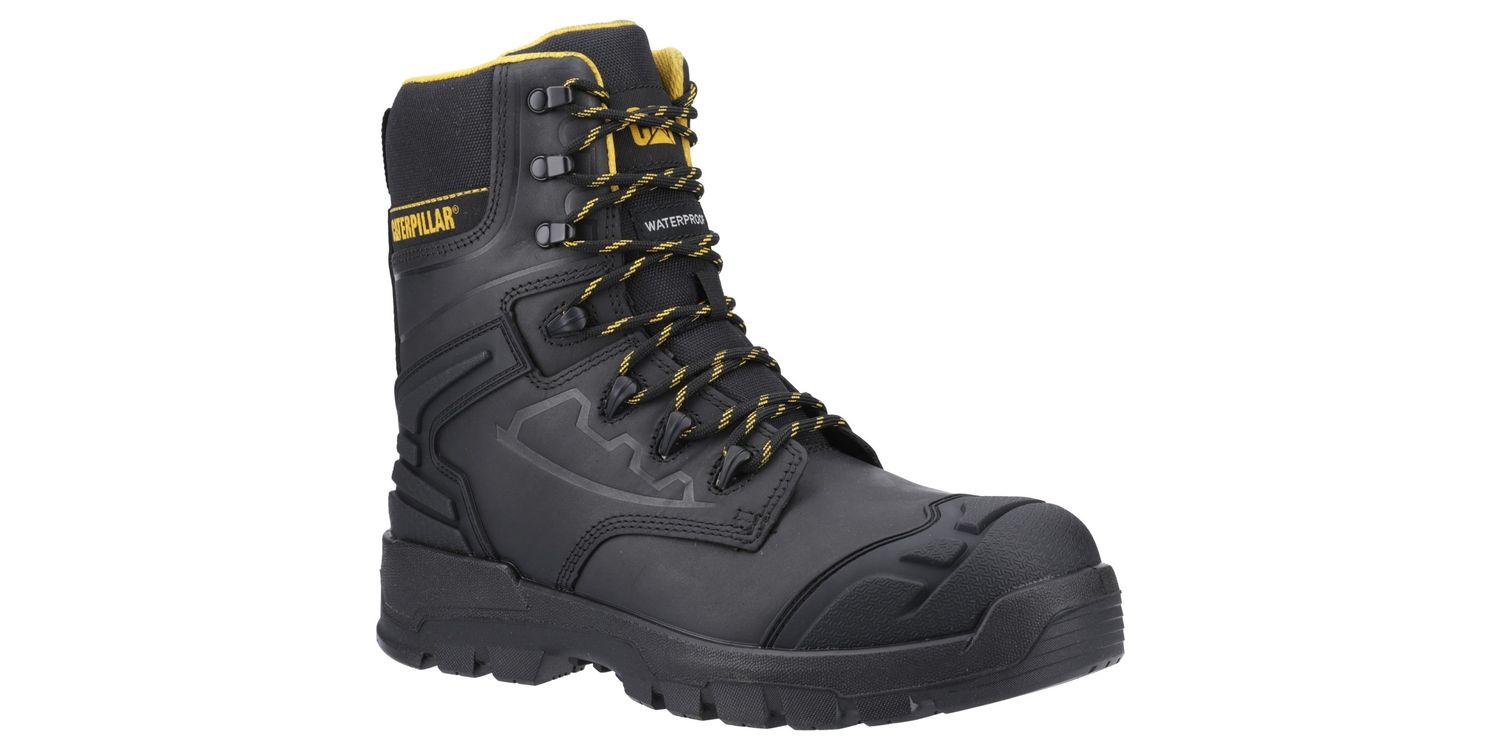 The Caterpillar STRIVER XL 8" Black Safety Boot, has a hard wearing robust side zip water proof safety boot, with an anti-penetration steel midsole and a steel toe cap with impact resistance of up to 200 joules.