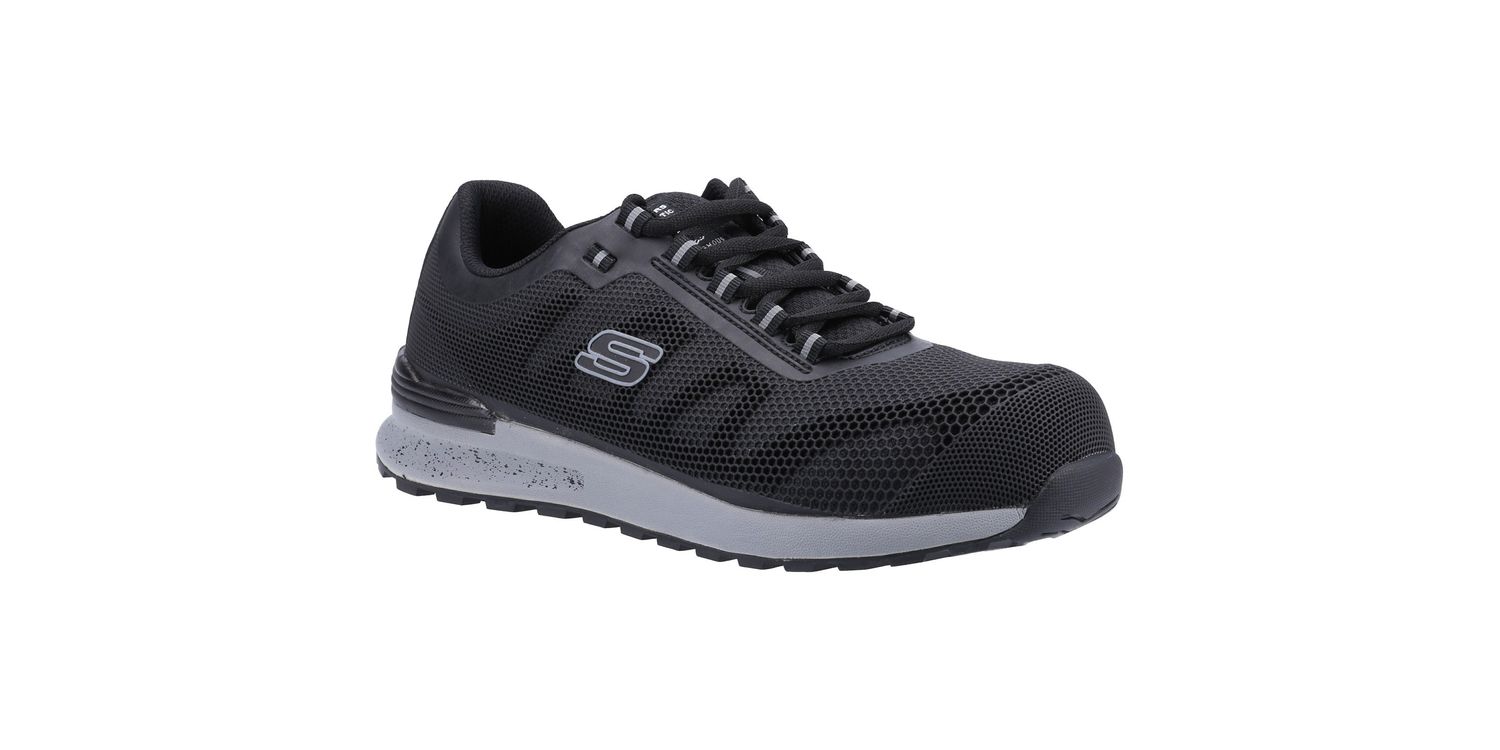 Lace up sporty casual composite safety toe slip resistant work sneaker.