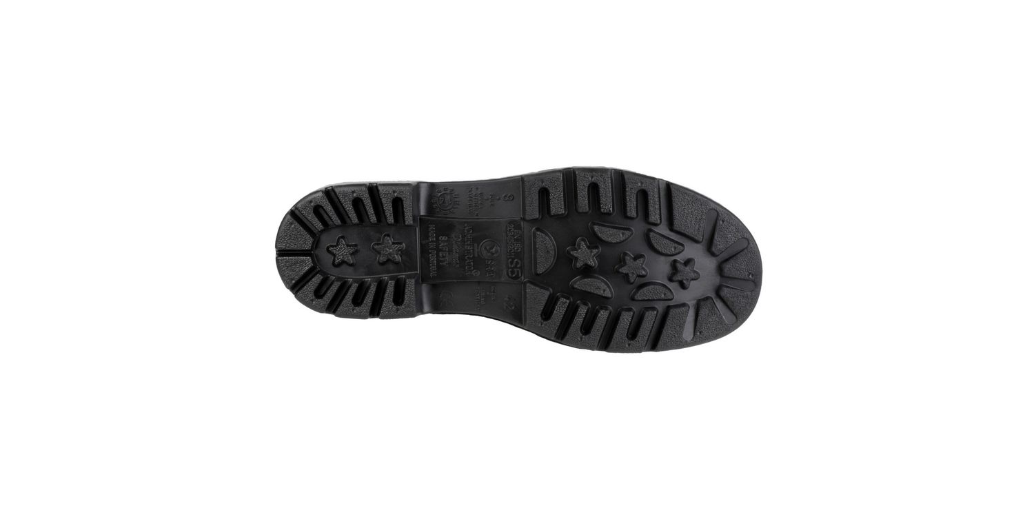 Lightweight, waterproof black PVC/Nitrile wellington with ribbed deflector panels ideal for labourers. Includes 200 Joule impact and compression resistant steel toe cap and underfoot protection is given with a steel midsole.Comfortable and practical safety bootFully waterproof PVC wellingtonImpact and compression resistant toe capAnti-static and energy absorbing heel