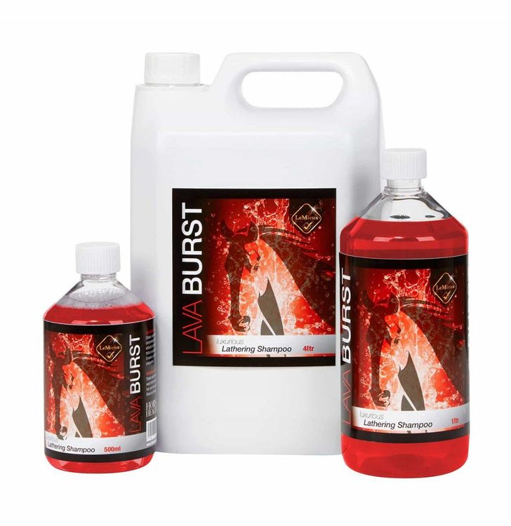 LeMieux Lava Burst Shampoo cleans, conditions and intensifies coat colour. The balanced and super-concentrated formula includes Aloe Vera & Camomile, enhanced with natural fruit extracts including Peach.