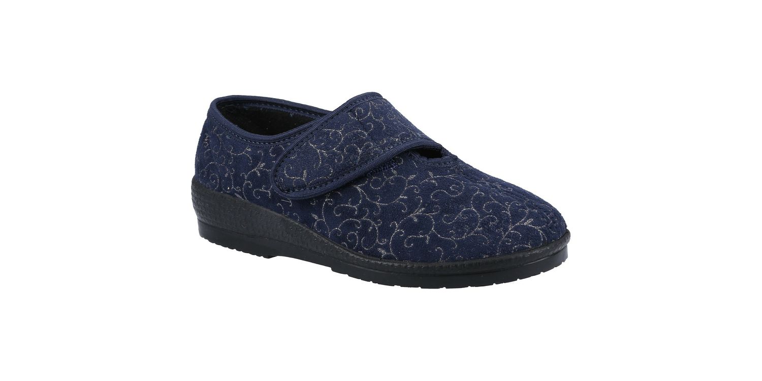 Extra wide Touch Fastening slippers fitting up to a 2E wide fit. Wide and roomy toe box area ideal for swollen feet. Extra long Touch Fastening strap and simple wide opening. The insole can be removed if required. Machine washable.