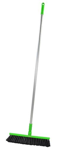 The Harold Moore Lime Green Equestrian Stable & Yard Broom is a colourful and functional stable brush. This yard broom was created with the requirements of the professional equine industry in mind. It has a polypropylene back with black PBT bristles, a powerful angled screw thread in the same colour, and a beneficial hand grip on the top of the aluminium pole.