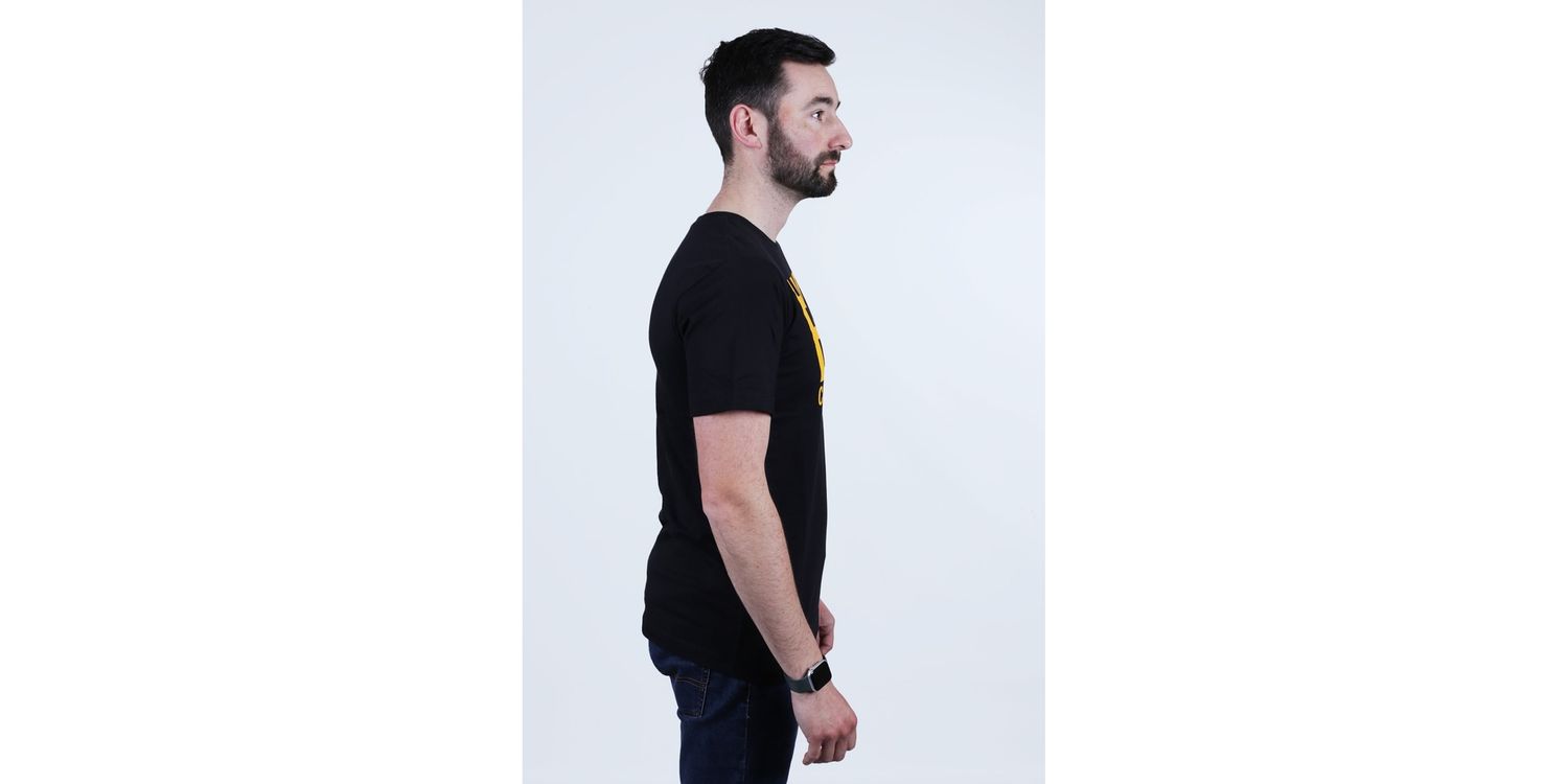 Leave them begging for more in this tee that gets right to the point. Featuring a classic fit complemented by modern comforts like a soft yellow necktape liner and tagless labeling, this one has it down to a tee.Center Front Chest GraphicLogo Label on Left Sleeve HemTagless Back Neck