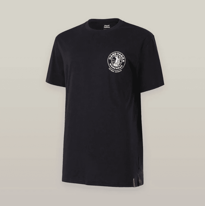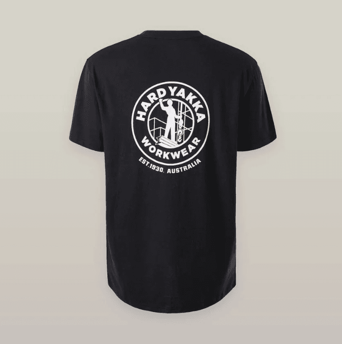 The standout Hard Yakka heritage logo on the chest pays tribute to the brand's legacy of toughness and durability. Perfect for work, weekends, or anything in between, it’s the ideal go-to tee for the modern man who appreciates quality and heritage style.