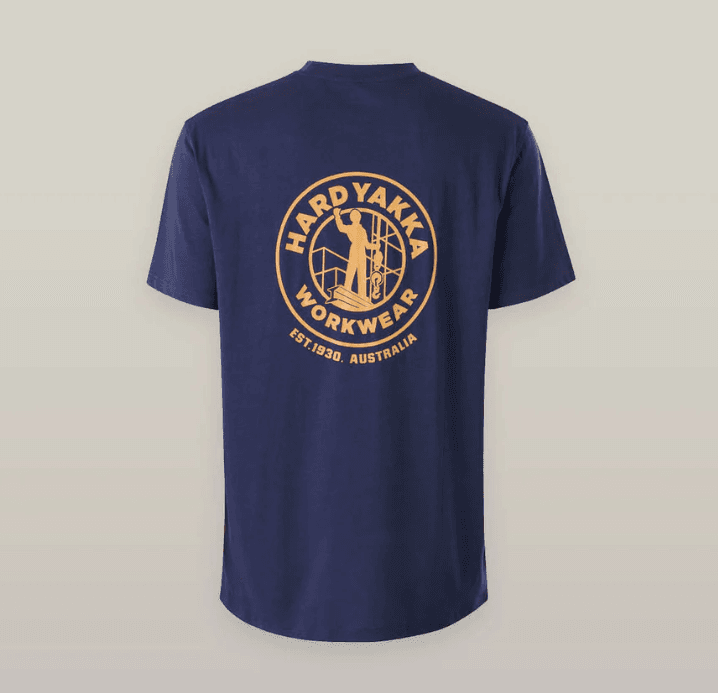 The standout Hard Yakka heritage logo on the chest pays tribute to the brand's legacy of toughness and durability. Perfect for work, weekends, or anything in between, it’s the ideal go-to tee for the modern man who appreciates quality and heritage style.