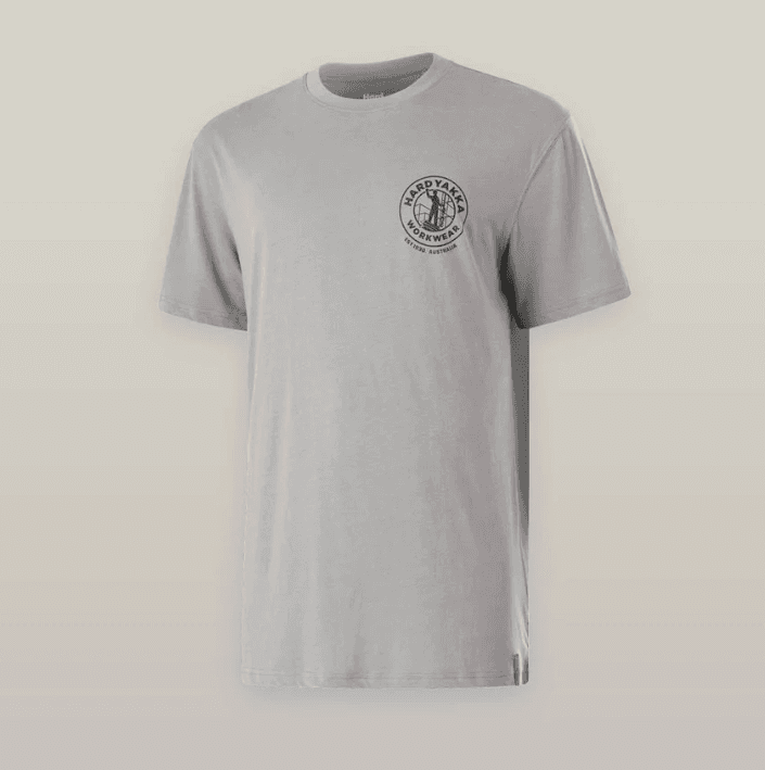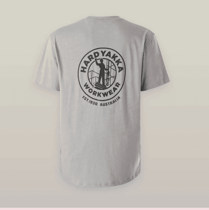 The standout Hard Yakka heritage logo on the chest pays tribute to the brand's legacy of toughness and durability. Perfect for work, weekends, or anything in between, it’s the ideal go-to tee for the modern man who appreciates quality and heritage style.