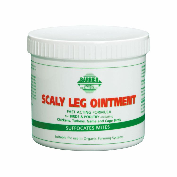 Intensive action against scaly leg mite in chickens, turkeys, game and cage birds. Acts as a barrier against scaly leg mite. Soothes, calms, provides instant relief against irritation and by physical means, suffocates mites on infested birds by direct application to the legs, feet, comb and wattle. Will not taint legs. Suitable for organic farming systems.
