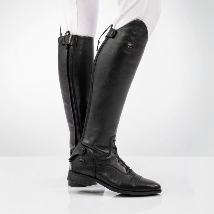 Ideally suited for training and competing. the 3D stretch calf of the Como boot hugs the leg for a streamlined, flattering look while still being exceptionally comfortable when walking or riding. The width of the boots can stretch up to 1cm from the size listed in the size chart due to the nature of the synthetic stretch.