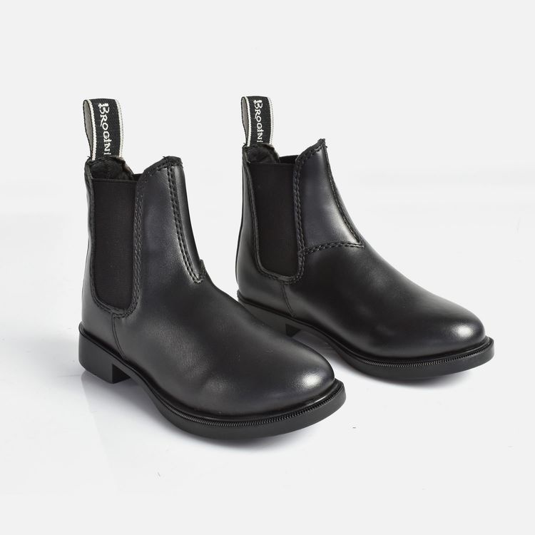 The perfect Pony Club boot, a classic jodhpur boot that is super easy to keep clean and maintain, meaning less time cleaning your boots and more time with your ponies! Large elastic side panels are supportive and make these boot easy to pull on and go with an easy-care synthetic leather upper meaning less cleaning time. Slimline foot shape with competition style rubber sole with a moisture wicking lining to keep feet fresh. Featuring a rear Brogini heel puller.