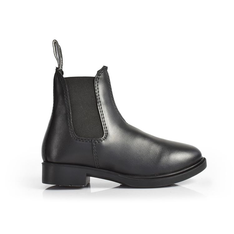 The perfect Pony Club boot, a classic jodhpur boot that is super easy to keep clean and maintain, meaning less time cleaning your boots and more time with your ponies! Large elastic side panels are supportive and make these boot easy to pull on and go with an easy-care synthetic leather upper meaning less cleaning time. Slimline foot shape with competition style rubber sole with a moisture wicking lining to keep feet fresh. Featuring a rear Brogini heel puller.