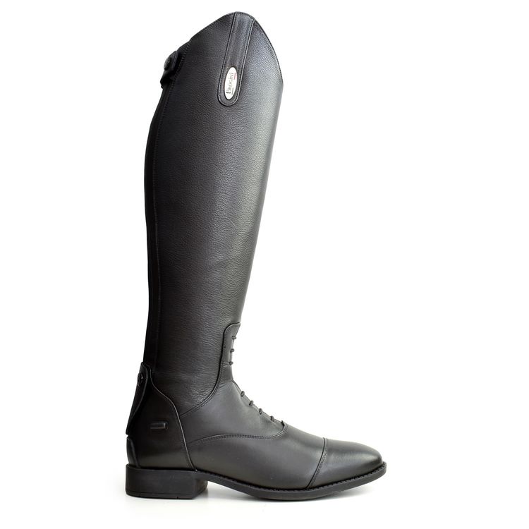 Perfectly sporty, the Rovigo boot is the perfect finishing touch to your competition wardrobe. The smooth leather foot features elastic laces for a snug, yet comfortable fit and the full grained leather calf is soft and will conform to the leg perfectly for a flattering look. Features a rear zipper with elastic panel which flexes with the calf muscles for a snug, flattering yet comfortable fit, smooth leather foot is durable and simple to maintain, grain finished calf for the sporty look, side strap with Italian Brogini badge, slimline rubber sole for close contact, concave reinforced toe cap, rear zip cover at the heel stops spurs damaging your zips and a top zip cover with subtle Brogini branded badge.