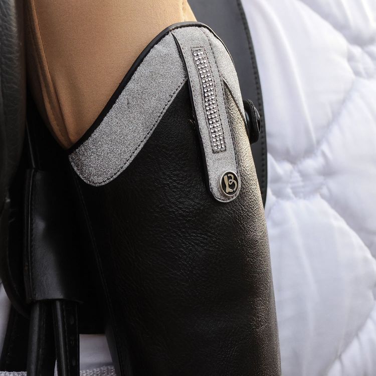 This kid's boot is comfortable enough for everyday use, whilst still being sleek enough for everyday use. Features a genuine leather foot which moulds perfectly to the foot for exceptional comfort. The real feel synthetic leather on the outer of the calf has a high level of stretch for comfort and is easy to keep clean, full length rear zipper with laced pull-tab for easy on and off, and a genuine leather panel on the inside of the leg aids grip in the saddle and helps to keep the boot upright, stopping unsightly creases at the ankles. A leather zip cover at the heel and zip stop at the top of the boots protect the zipper and stop it falling down. Additional patent top makes the boot stand out above the rest.