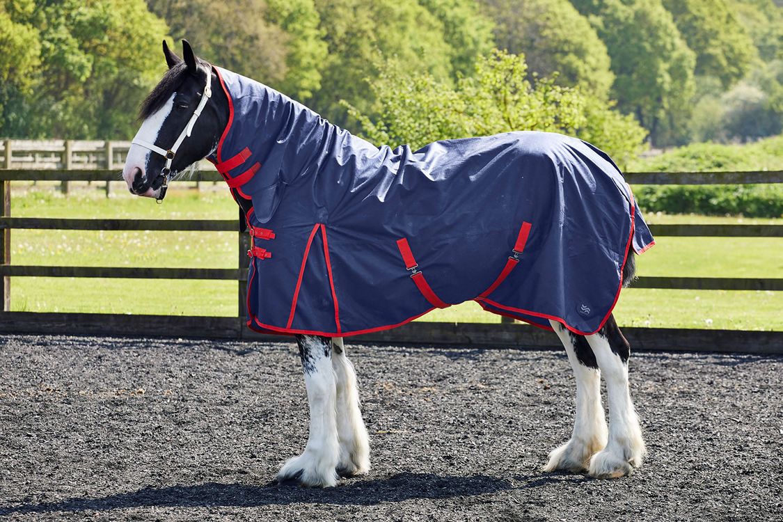 High quality 600D double ripstop, waterproof and breathable 100g fixed neck turnout rug. Packed with features including shoulder gusset, tail flap, elasticated detachable leg straps, twin front fastenings and cross surcingles. Packed in a good quality carry bag with full product details easily visible to assist retailing in tight spaces.