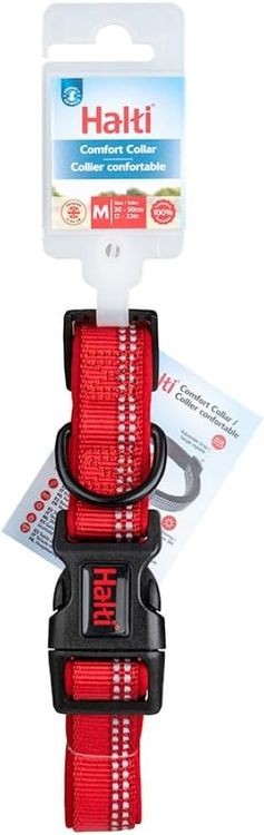 Halti Comfort Red Collar is a simple yet practical collar, which is easy to adjust, and the button release clasp is strong and secure. There is also an extra loop for the essential name and microchip tags. Designed with high - quality, padded materials, this collar ensures a snug, yet gentle fit, reducing pressure and irritation on your dog's neck.