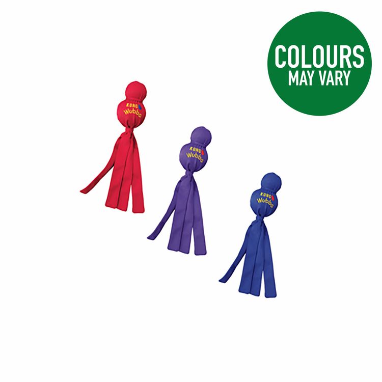 A fun, interactive toss and tug toy. Durable reinforced nylon fabric covers a plastic squeaker bladder beneath. The long tails make it easy to pick up and throw. Dogs love to squeak it and shake the flapping tails back and forth. Please note: colours vary, colour selection not possible.