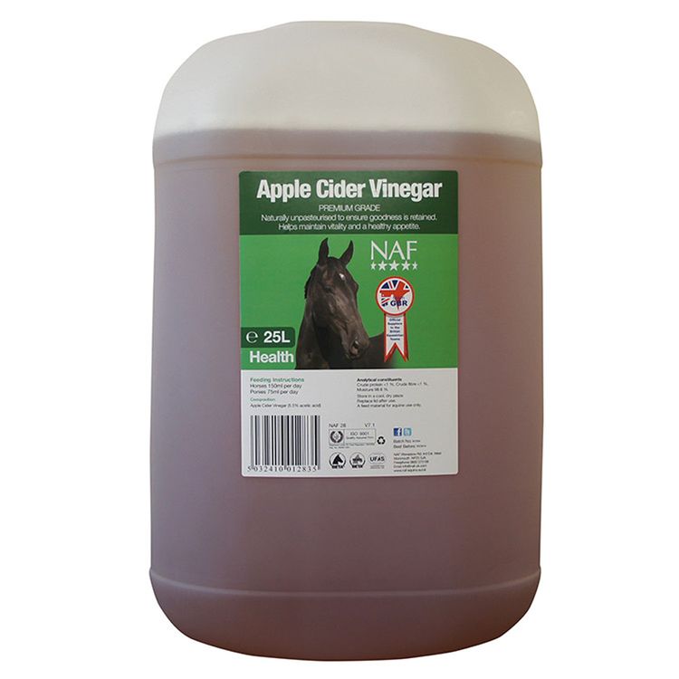 NAF Apple Cider Vinegar (Unpasteurised) is a natural, traditional feed supplement for horses, produced from carefully fermented apples. Widely used as an everyday addition to the ration, it helps support overall wellbeing and maintain a healthy internal balance, especially during seasonal changes, coat transitions, or times when horses may benefit from extra nutritional support.