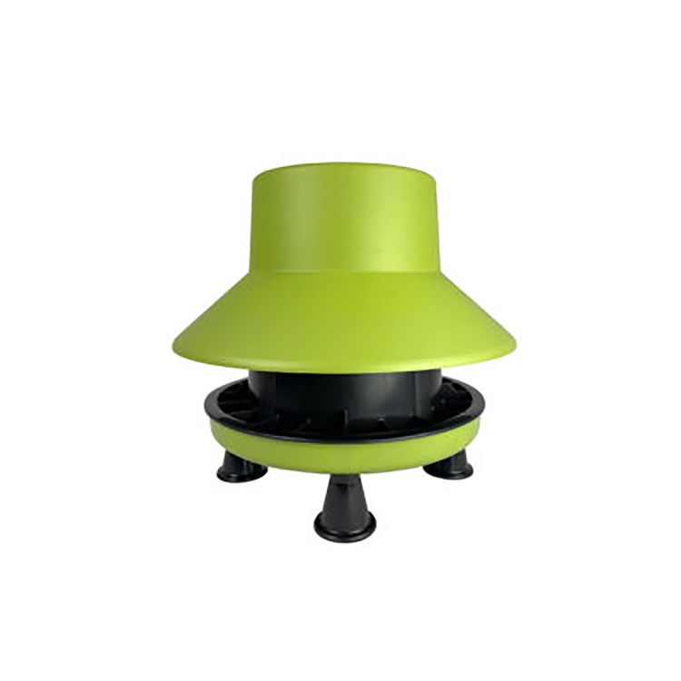 The Blenheim feeder is a durable mid-sized feeder ideally suited for the domestic and smallholder markets. It is suitable for most breeds of poultry as well as some smaller breeds of waterfowl. The design is perfectly suited to all types of feed including pellets, wheat, corn and mash, and the main feed tube is at a fixed height to control the flow of feed to the correct level. It comes with built-in anti-scratch fins, which will reduce feed waste and minimise feed contamination. The simple twist and lock design allows for easy filling and cleaning of the feeder. Floor standing and can be raised 6cm off the ground with our standard conical feet. The rain hat slots over the top of the feeder tube providing protection from the elements and preventing birds from fowling the feed. Made from 100% recycled plastic and manufactured in the UK, providing an environmentally friendly, low carbon feeder.