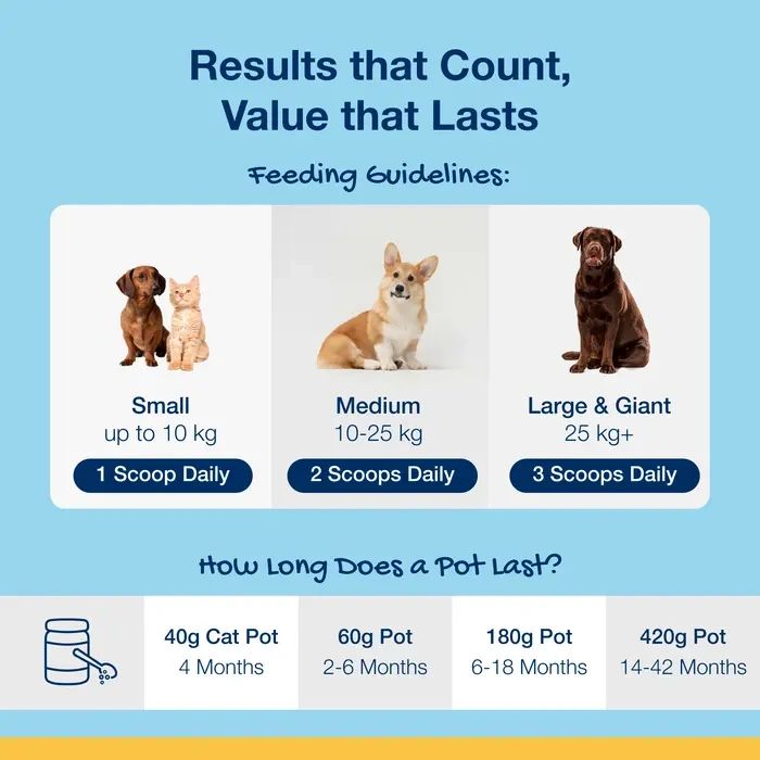 Made from specially selected seaweed (Ascophyllum nodosum), this easy-to-use powder works systemically through your pet’s saliva to help reduce plaque and tartar buildup. Simply sprinkle it over your pet’s food each day to help support healthier teeth and gums, no brushing required.