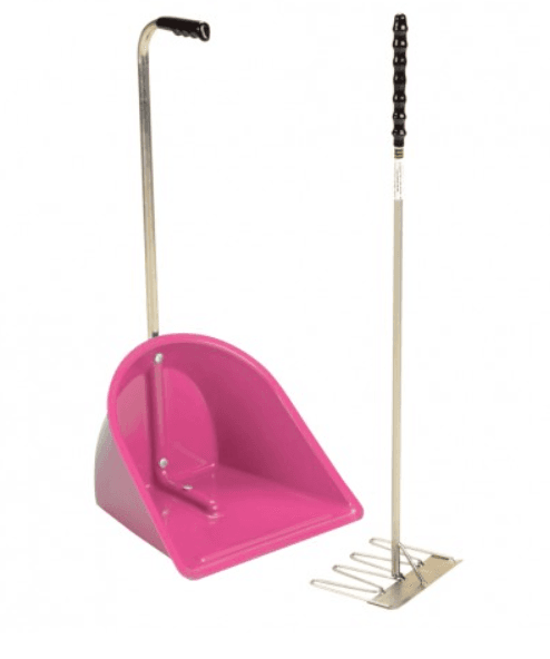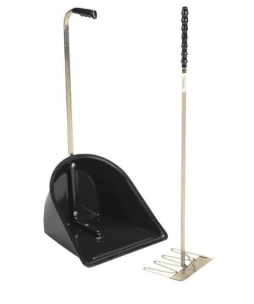 A really easy method of collecting droppings in the stable, yard and at shows. Smart stubbythene moulding. This consists of a scraper on the back of the original rake.