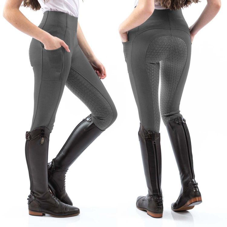 Ride with confidence and comfort in these stretchy riding tights featuring a full silicone monogram seat for stability and two stretchy zipped side pockets for quick access to your essentials. With a full silicone printed monogram seat for grip on the saddle and a wide supportive waistband, these stretchy riding tights will let you take the reins without distraction. Also features two stretchy phone poskets.