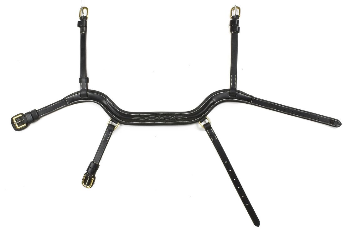 The free, moving flash strap with D-rings so it sits comfortably and anatomic shape of this noseband ensure optimum comfort for your horse and the raised, decorative detail across the nose offer a classic look. Features decorative stitched motif, brass buckles with leather backers and soft leather padding.