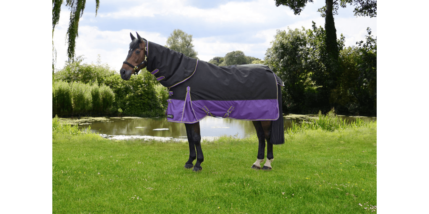StormX Original 200 Turnout Rug with Detachable Neck Cover - Black/Purple/Yellow