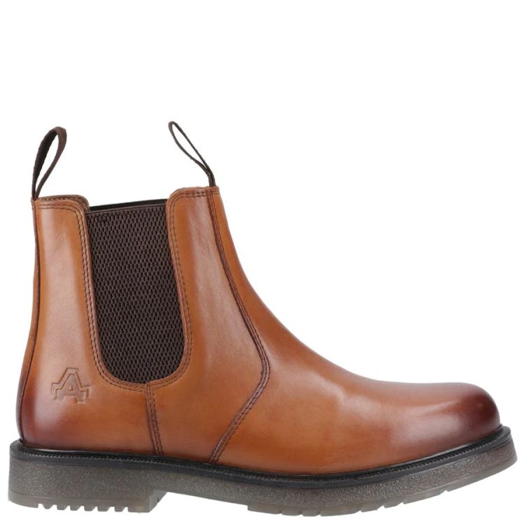 The Amblers Men's Tan Wells Boots, are a hardwearing dealer boot, with full grain leather upper and PVC sole. Crafted with a sturdy leather upper and a tough rubber sole, these boots are designed to withstand daily wear while providing all-day support.