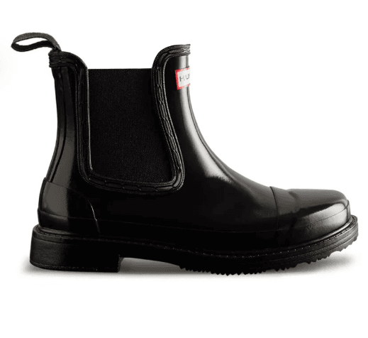 The Hunter Boot Co, Women's Commando Gloss Chelsea Black Boots, are designed for the modern adventurer. These iconic boots fuse timeless Chelsea boot design with Hunter's signature waterproof protection.