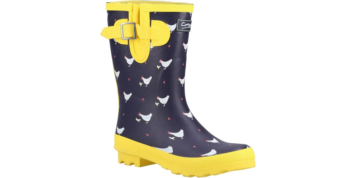 Step out in style with the Cotswold Farmyard Blue Mid Wellington Boots.