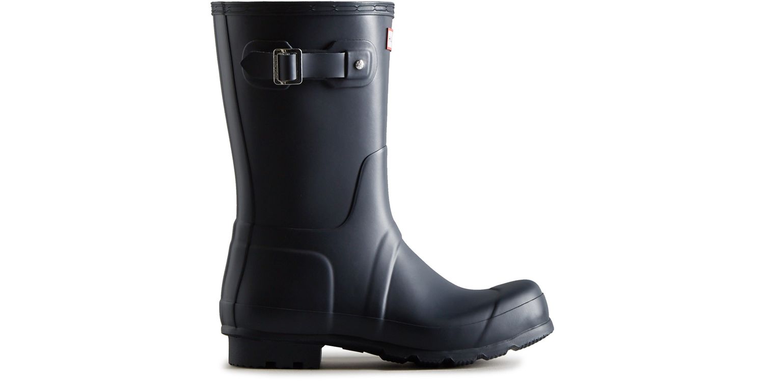 The Men's Original Short Wellington Boot takes the iconic design of the Tall Boot and scales it down for a versatile and comfortable style. From jeans to chino's, styling is easy thanks to the mid-calf height.WaterproofHandcrafted from 28 partsPolyester liningRubber outsole with Hunter Original tread pattern