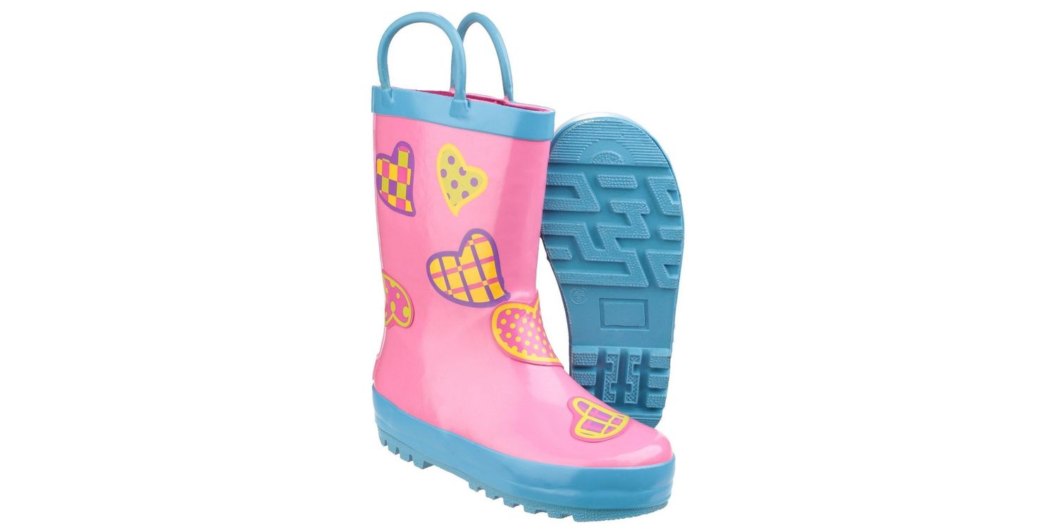 Cotswold Child's Puddle Waterproof Pull On Wellies (Hearts)