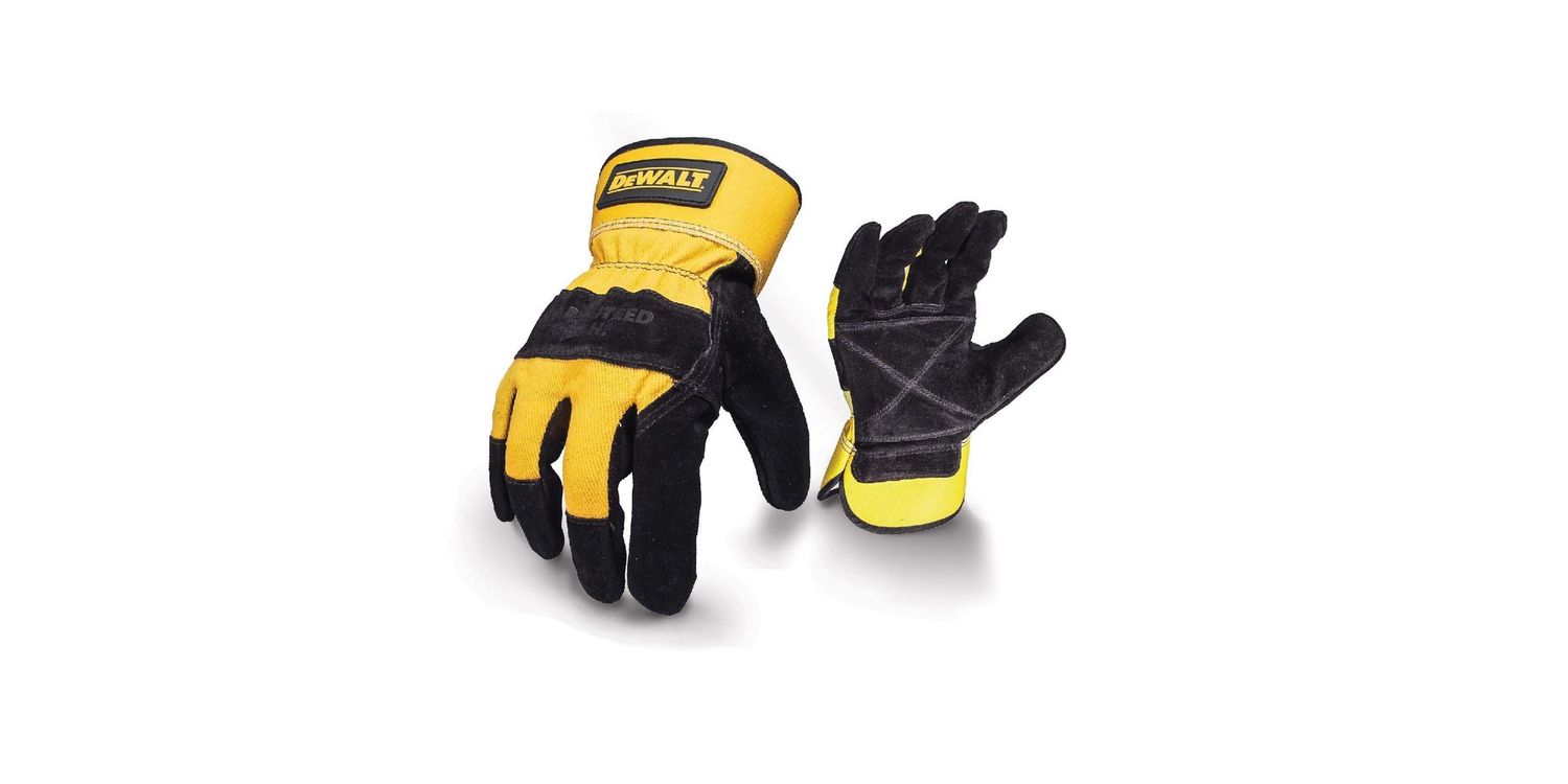 DeWalt Rigger Glove for a rough work environment with a focus on material movement and earth work. traditional rigger glove design. double stitching for added strength. thick pig-skin leather for added durability and strength. EN420 and EN388. Leather (Pig)/Fabric.