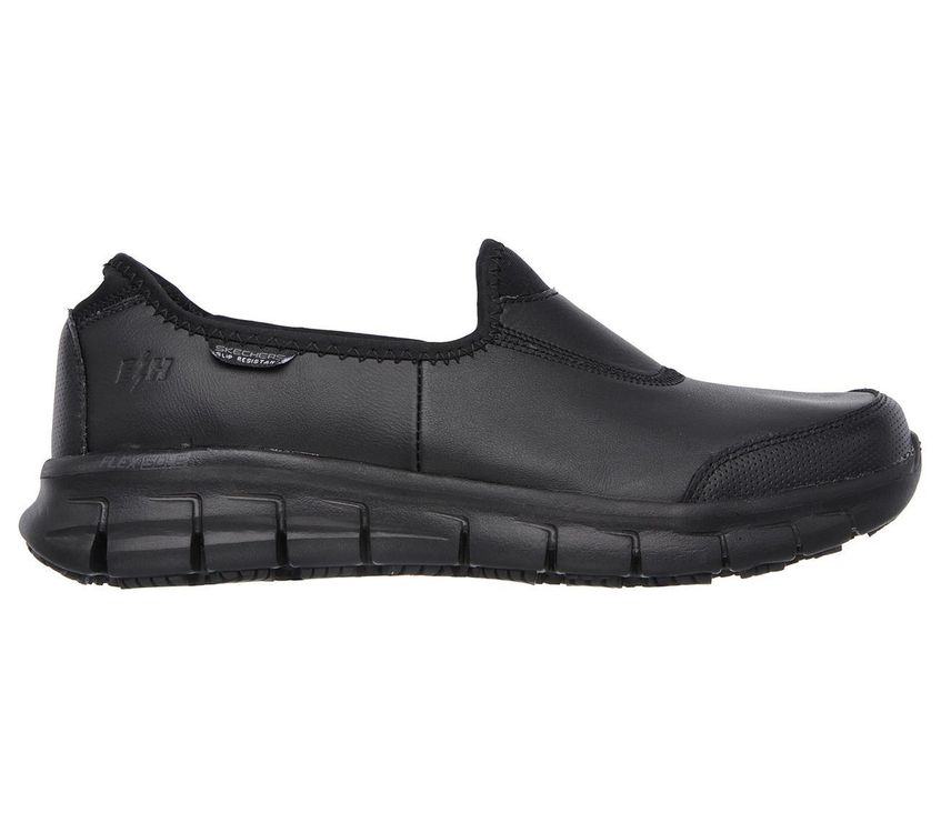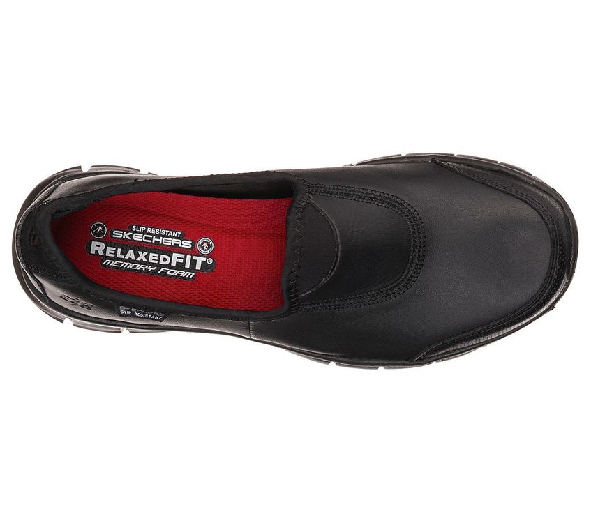 The Skechers Work: Relaxed Fit - Sure Track work shoe features a slip-resistant rubber outsole which is also oil-resistant and protective leather toe and heel overlays. This casual slip-resistant work shoe is incredibly comfortable thanks to the Memory Foam insole and the supportive shock-absorbing FlexSole midsole.