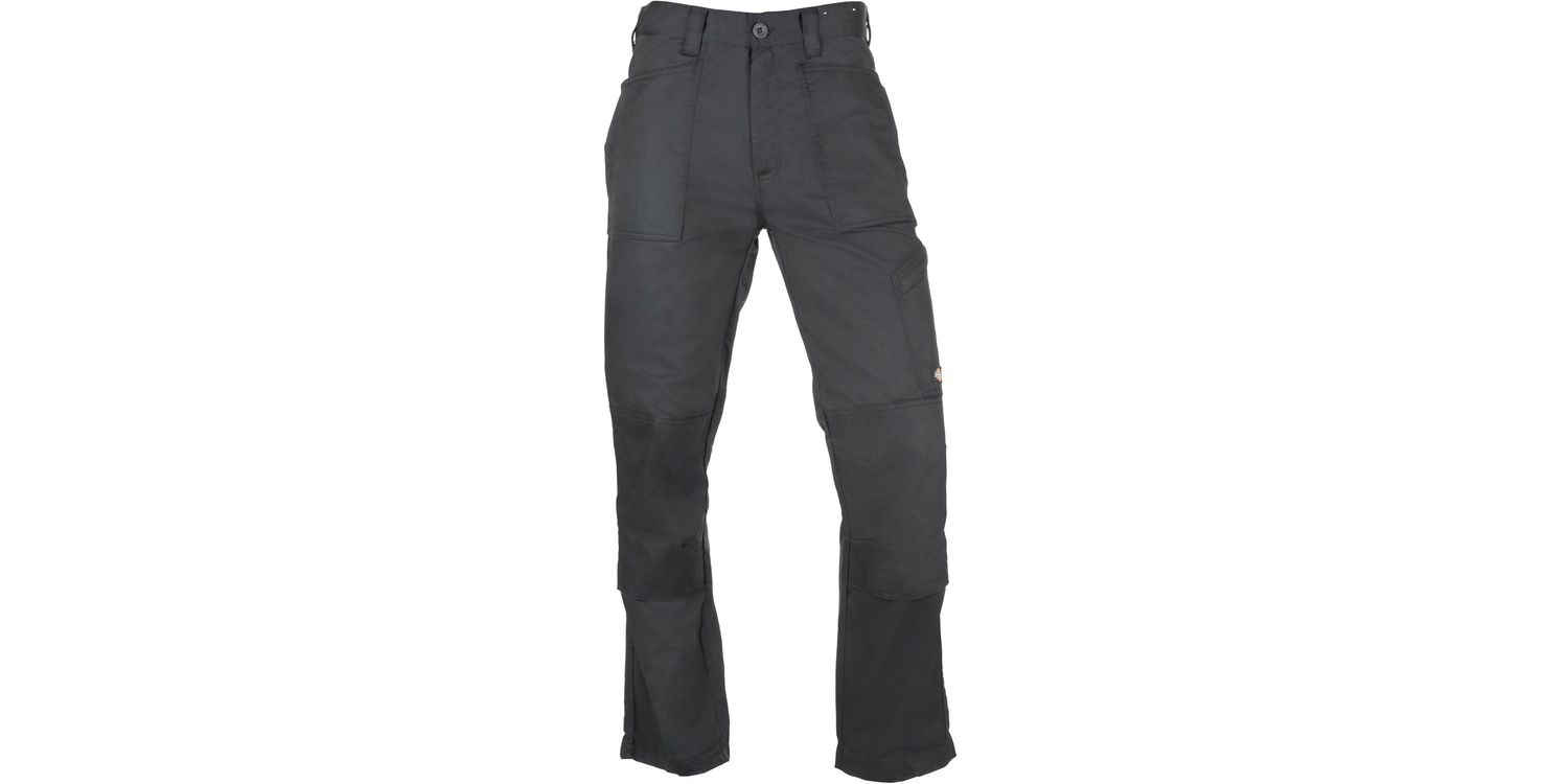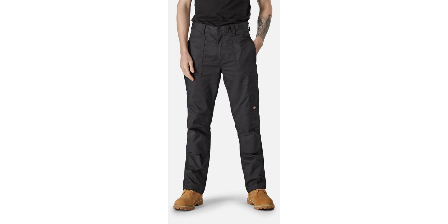 The Dickies Action Flex Men's Black Multi Pocket Trousers have a regular fit and are designed to provide all-day comfort in a variety of heavy duty professions such as construction and landscaping. These black work trousers have a multitude of pockets that are ideal for storing your work essentials and tools inside so that they are readily available whenever you need them. The pockets also have covered zips to protect them from scratch damage, and the reinforced knees protect you as well. They are an excellent choice if you want comfort and longevity.