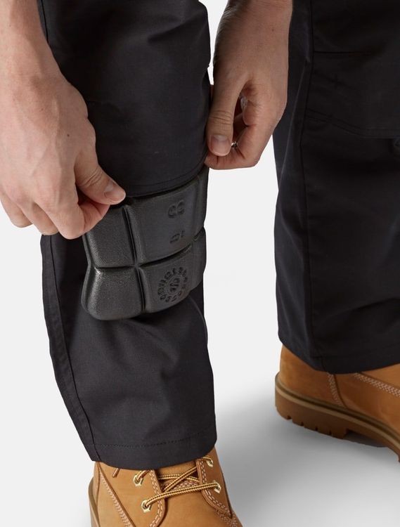 An upgrade of our classic WD814 pant, the Dickies Men's Action Flex Black Trouser is designed to be ready for modern-day work. With plenty of covered zip pockets to stop scratch damage the knee pad pockets and regular fit give these pants ultimate comfort and durability.