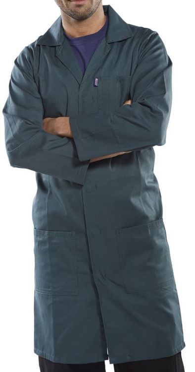 This laboratory, warehouse and work coat is perfect for all practical applications. Features smart lapels and plenty of handy pockets to make everyday tasks easier.